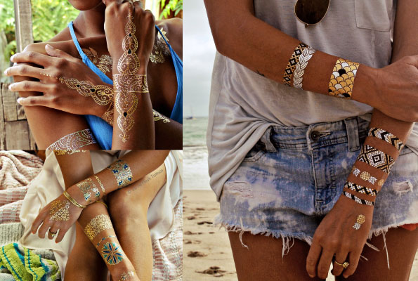 These tattoos can be worn around your arms, your wrists, shoulders, and neckline and even on your feet. They normally come in shades of gold and silver, making it easy for them to be matched with your outfits.