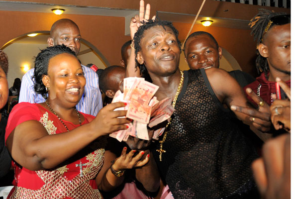 And Chameleone didn’t have to do a lot; he simply sang out Mama Fiina’s name as he performed his Wale Wale hit. Mama Fiina signaled him to come down where she was seated. She got out bundles of Shs20,000 notes and started handing them over to him.