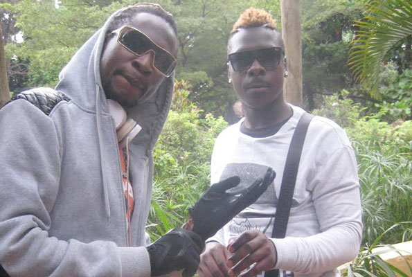 Singer Coco Finger (L) with his fan Jimmy Katende whom he told about his plans and why he has been off the radar. PHOTO by Isaac Ssejjombwe