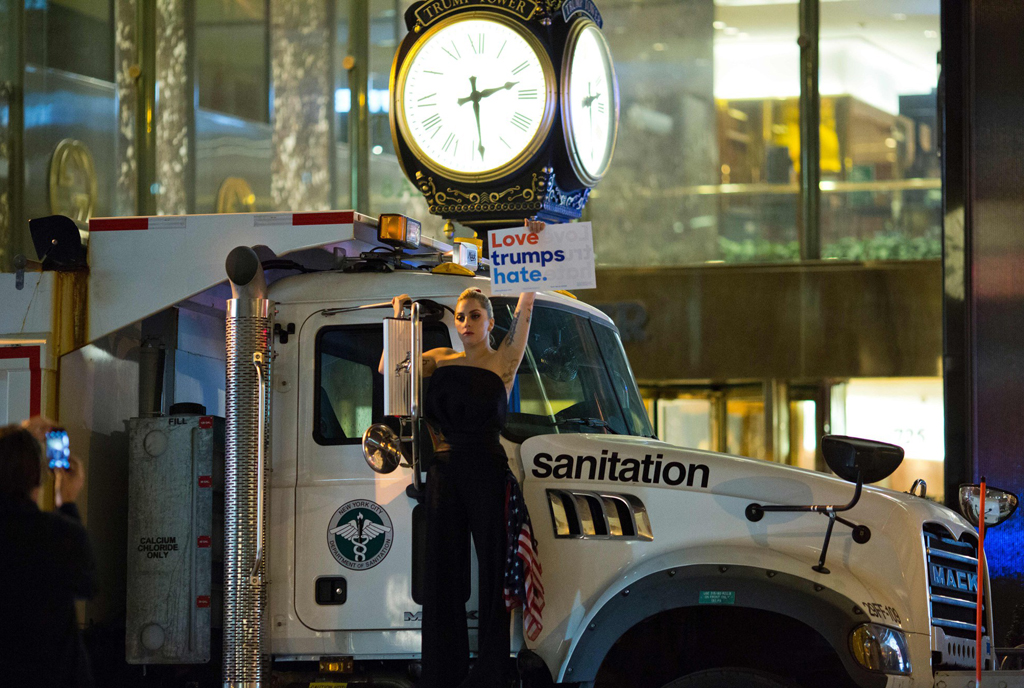 Last night, protests and riots erupted across the US after Hillary Clinton lost the presidential race to Republican candidate Donald Trump. As the IBTimes reports, there were demonstrations seen at many college campuses in the US. The world of music largely responded in shock and horror – before Gaga herself took to the streets to protest outside Trump Tower in NYC.