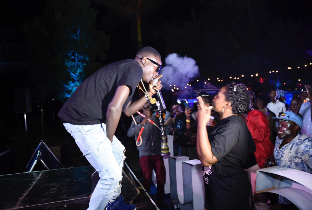The show that took place at Forever Resort just below the new Jinja Bridge saw the 24-year-old stepping two hours late. Before him, Evoke Band, dancers and beatboxers had warmed up the stage.