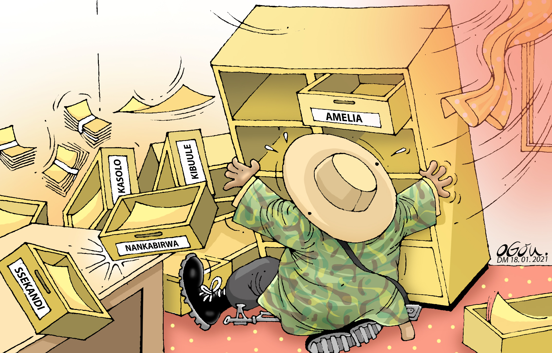 Apparently, plain-clothed goons in army vehicles appeared at one polling station with pre-ticked ballot boxes. Not exactly amused by this, the people of Lwamaggwa insisted they weren’t this lazy. They gathered the ballots and set them on fire. “If we let people tick for us ballots, they’ll come back to help us sleep with our wives too”, they yelled.