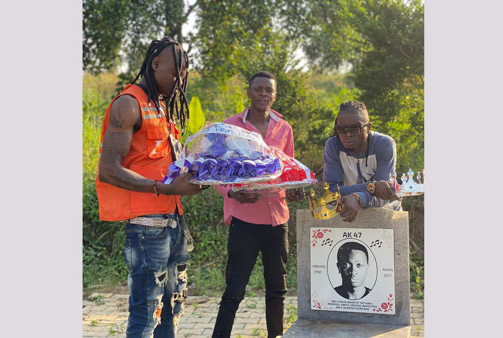 It is almost six years since Emmanuel Mayanja a.k.a Ak47 died after allegedly falling in the washrooms of De Ja Vu bar in Kansanga. Yesterday, his brothers Joseph Mayanja aka Chameleone, and Douglas Mayanja alias Weasel and Pius Mayanja also known as Pallaso paid their respects as they visited his final resting place.
