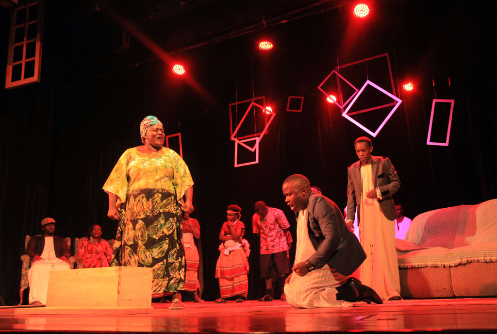 A drama group acts out a scene from Joshua Mmali’s play The Betrothal at the Uganda National Cultural Centre (National Theatre) in Kampala on August 3, 2018. Such events were banned as one of the measures to stop the spread of Covid-19, leaving many artists financially vulnerable. Photo/Rachel Mabala.