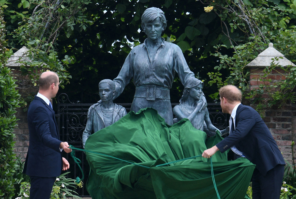The brothers took the wraps off the bronze likeness in the sunken garden of Diana’s former London home at Kensington Palace, in a stripped-back ceremony due to the coronavirus pandemic.