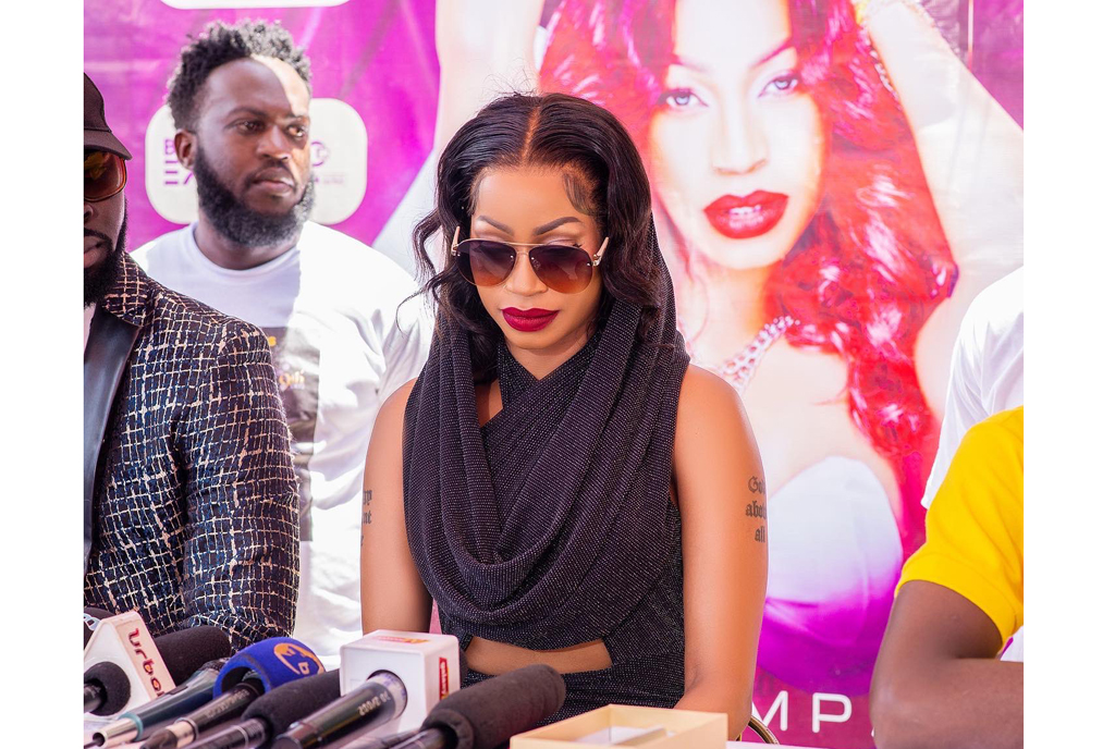 Sheebah Karungi addresses journalists. Photo | Isaac Ssejombwe