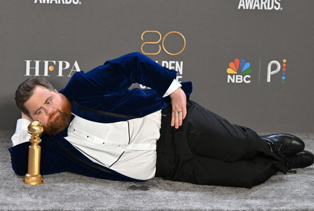 US actor Paul Walter Hauser poses with the award for Best Supporting Actor – Television Limited Series/Motion Picture for “Black Bird” in the press room during the 80th annual Golden Globe Awards at The Beverly Hilton hotel in Beverly Hills, California, on January 10, 2023. PHOTO / AFP