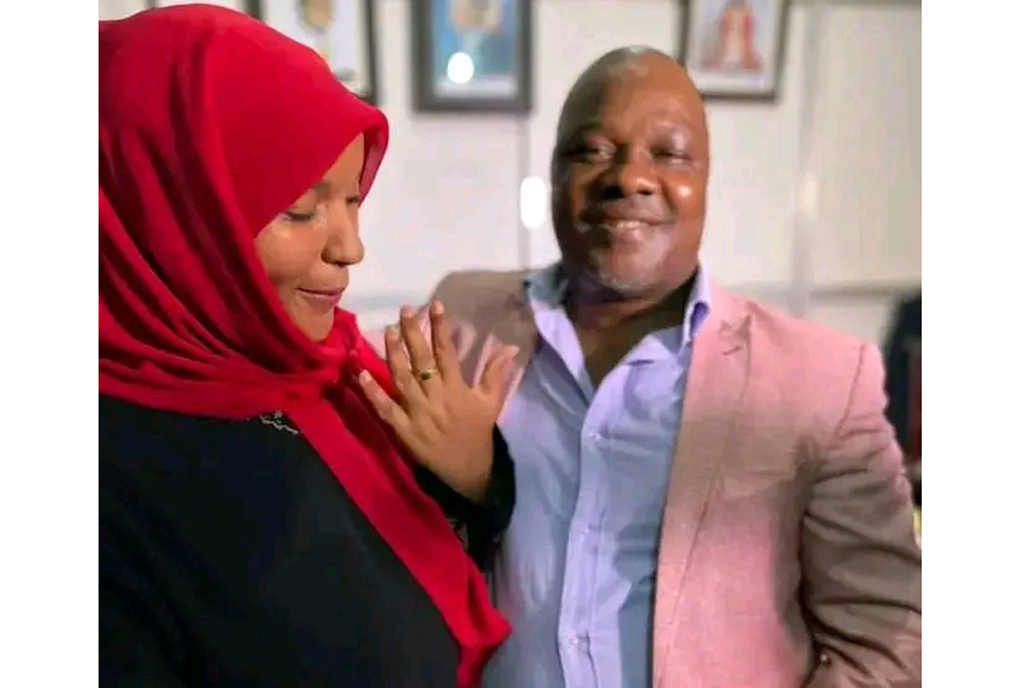 The photos show Lwasa kneeling to propose to the new lovebird from his office.