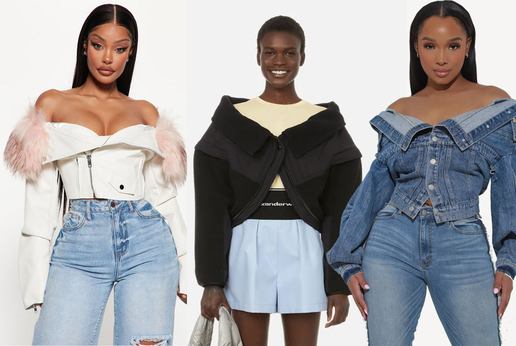 The shirtless look with this trend is the best way to have your jacket stand out, and take centre stage without being crowded with anything else you might have on. This requires you to have your jacket accentuated with other details such as faux fur, embellishments or prints so that it can be able to make a statement on its own without being shadowed by you not having anything else on. Pair this with a bottom of your choice, which could be denim pants, a mini skirt or even biker shorts. Keep the bottom as minimal as possible, so that your jacket is the star of this show.