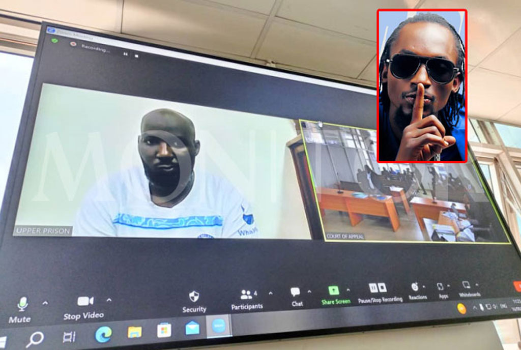 Godfrey Wamala aka Troy who was convicted of the manslaughter of iconic Ugandan artiste Mowzey Radio (inset) appears in court via video conferencing on August 16, 2023. PHOTO/JULIET KIGONGO