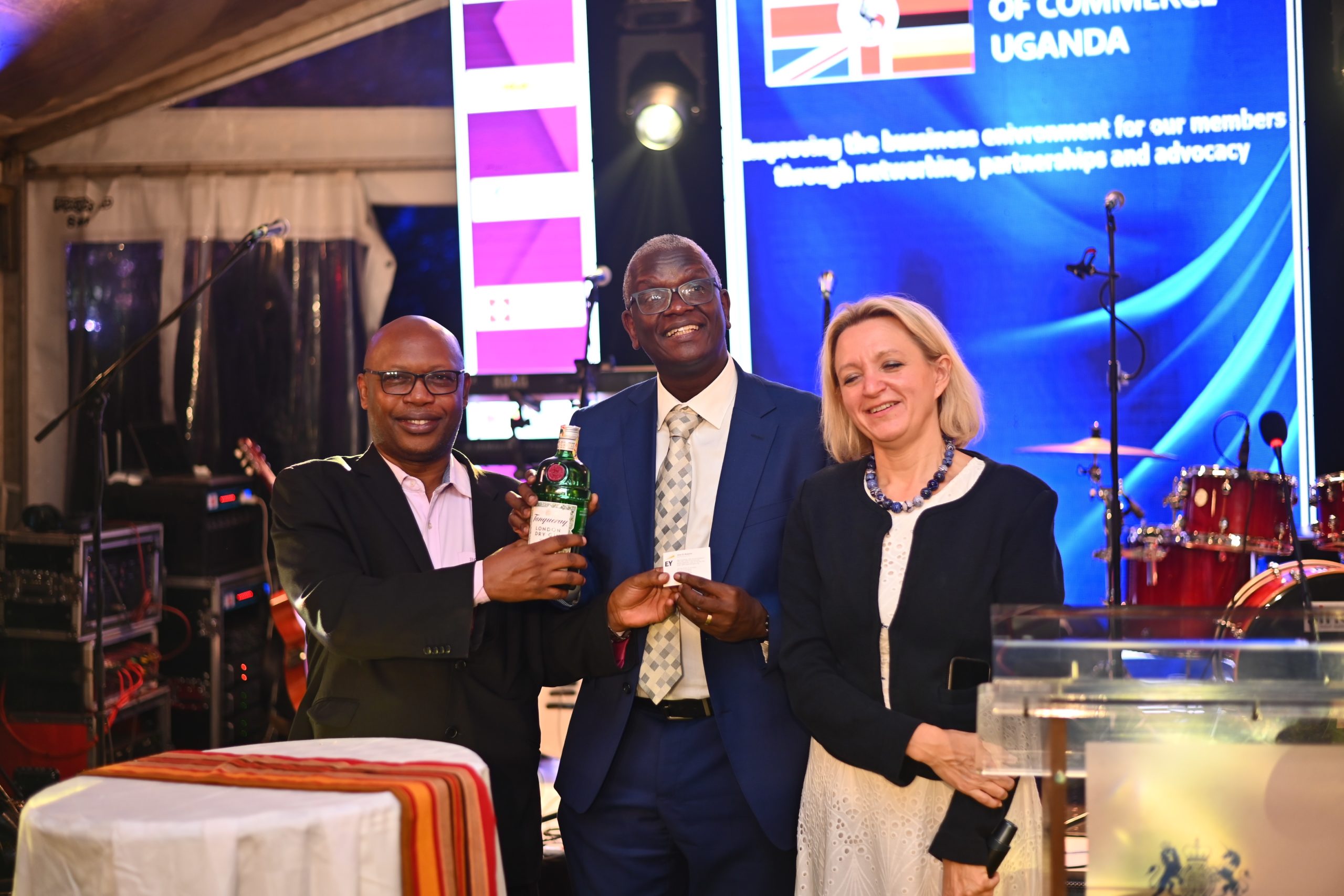 (L-R) Allan Mugisha the Executive Director Ernst and Young, Andrew Kilonzo the Uganda Breweries Managing Director and the British High Commissioner Kate Airey at the launch of the British Chamber of Commerce.
