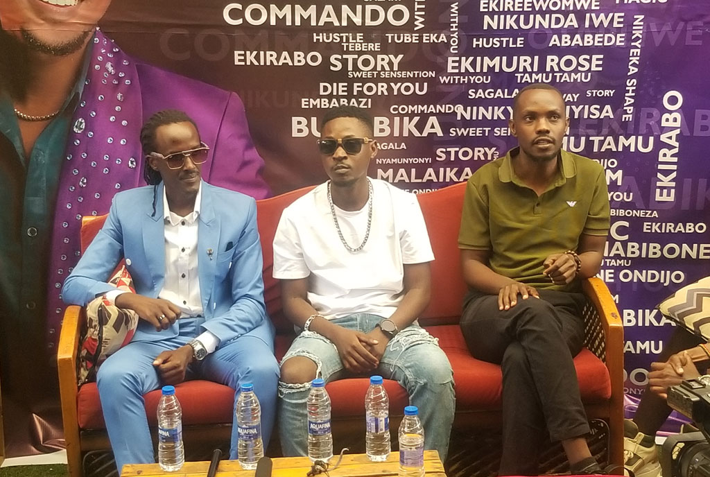 Skylanta (L), T Paul (C), Bruno Beats (R) during the press conference where they announced the Paul Live In Concert in Mbarara. PHOTO BY JULIUS BYAMUKAMA
